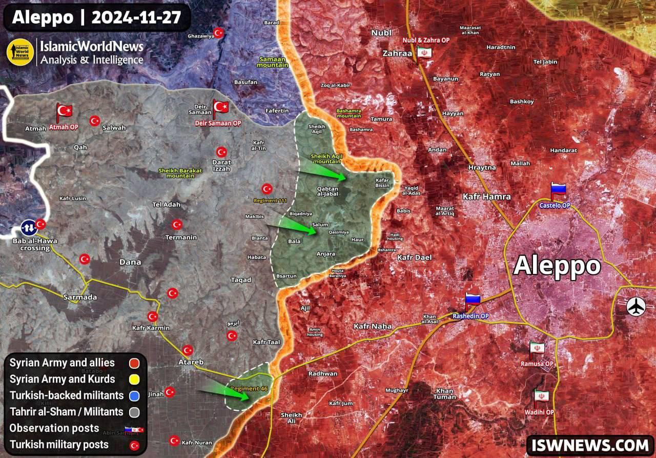 За різними даними, наступні сили вже за 5-10 кілометрів від Алеппо, наближаючись до міста із заходу.