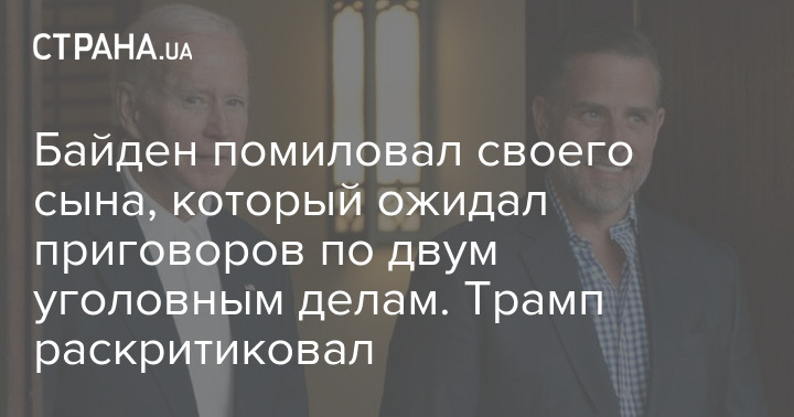 Байден помилував свого сина, який чекав на вироки з двох кримінальних справ. Трамп розкритикував