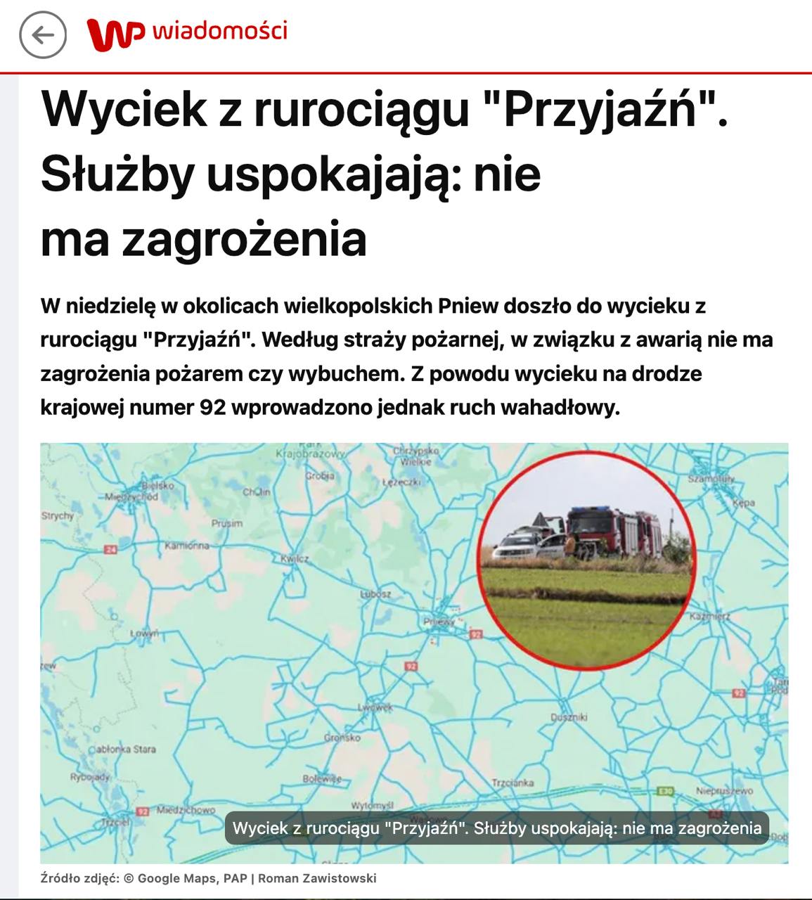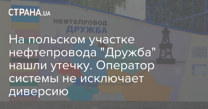 У Польщі біля міста Пневи на заході країни виявили витік нафти з трубопроводу "Дружба". Оператор "Дружби" не відкинув диверсію.