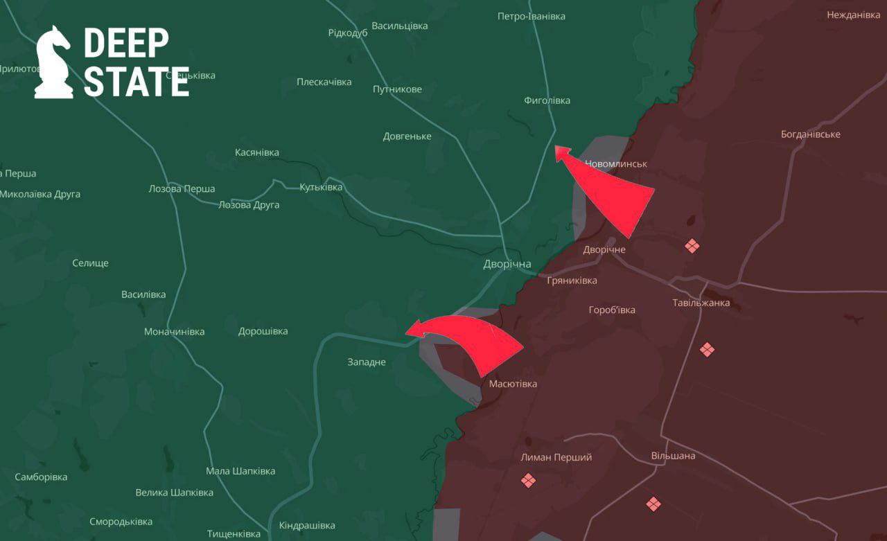 Зараз росіяни намагаються закріпитися на південь від Дворічної. Також продовжуються бої на плацдармі у Новомлинського. "Поки що ситуація складна, сили оборони намагаються її стабілізувати", - пише паблік.