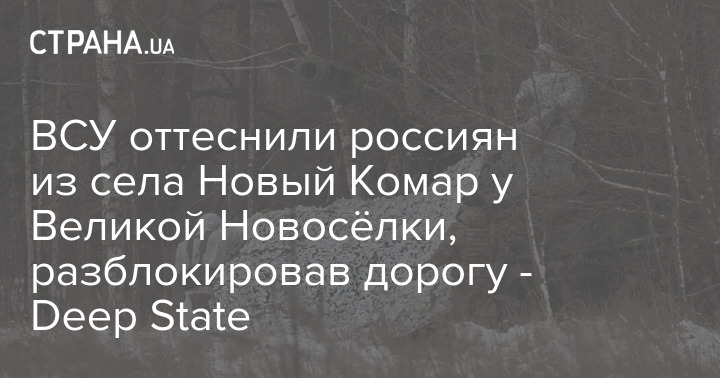 Збройні сили України відтіснили росіян із села Новий Комар біля Великої Новосілки Донецької області, розблокувавши дорогу на північ від міста.