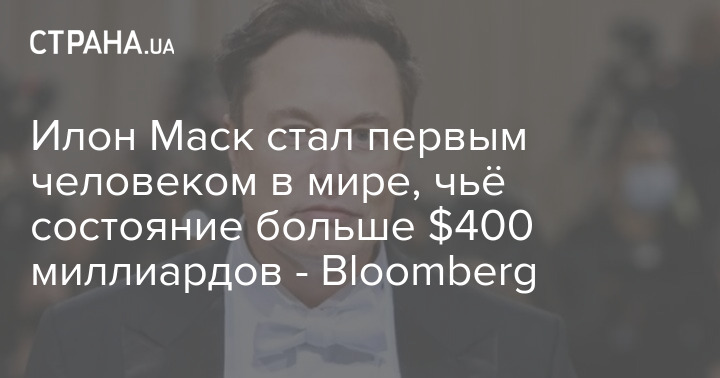 Американський бізнесмен Ілон Маск став першою людиною, стан якої досяг 400 мільярдів доларів.