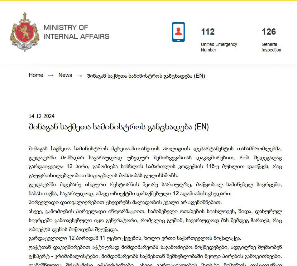 Про це повідомляє МВС Грузії.