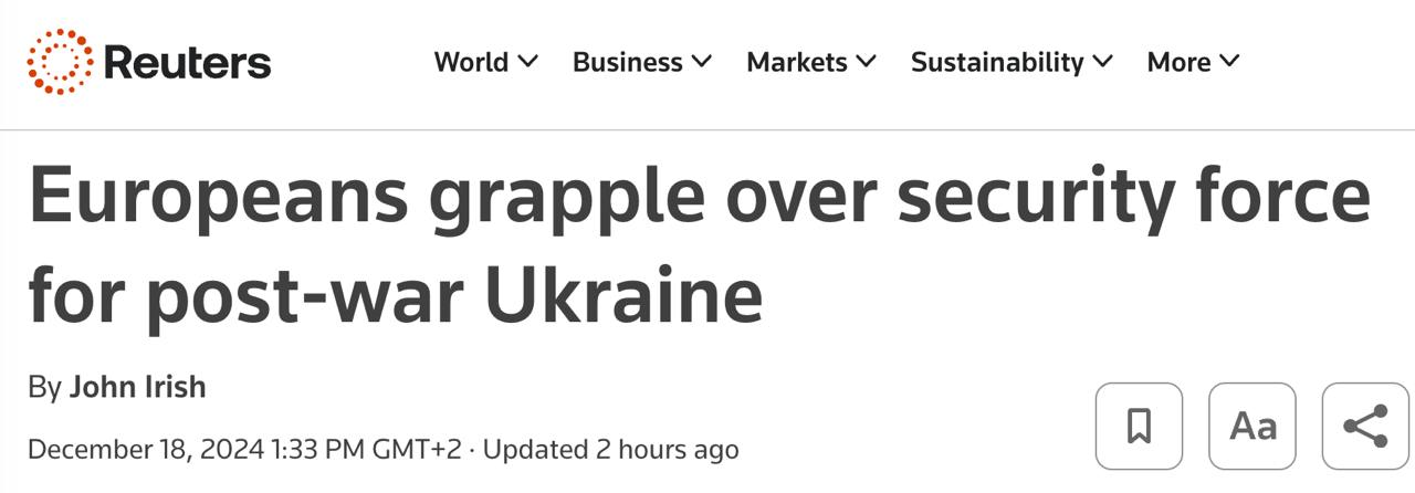 "Навіть якби існувала гарантія безпеки НАТО, звідки б узявся імпульс на місцях? Він був би європейським, тому наші військові керівники вже готують плани для розгляду європейськими лідерами у майбутньому", - заявив Reuters високопосадовець.