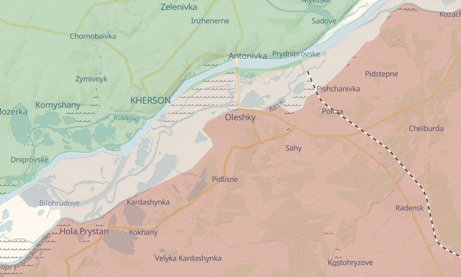 Глава ОВА заявляє, що під час цих обстрілів російські ДРГ намагалися просунутися у напрямку Херсона та висадитись на правому березі Дніпра, але "були виявлені та знищені". Про те саме пишуть і паблики українських військових. Водночас, вони повідомляють, що росіяни пустили по Дніпру димову завісу.