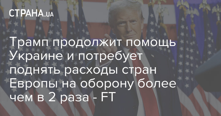 Трамп продовжить допомогу Україні та вимагатиме підняти витрати країн Європи на оборону більш ніж у 2 рази - FT