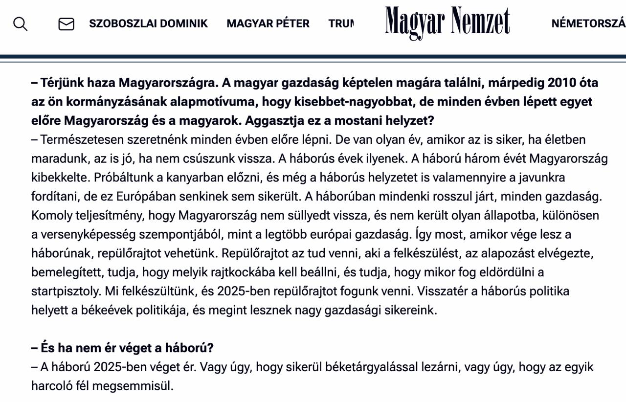 За словами Орбана, у 2025 році "замість політики війни повернеться політика мирних років, і ми знову матимемо великі економічні успіхи".