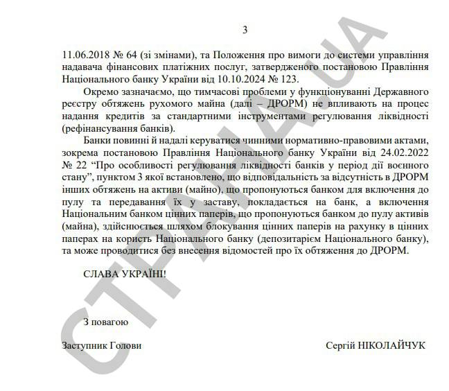 У розпорядженні "Країни" опинився цей лист НБУ №57-0008/96207 від 23 грудня 2024 року під заголовком "Про діяльність надання платіжних послуг у зв'язку з тимчасовим обмеженням роботи реєстрів".