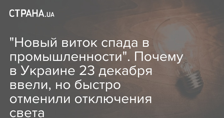 В Україні після кількох днів "енергетичного затишшя" повернулися екстрені відключення світла. 23 грудня світло знову почали відключати у Київській, Дніпропетровській, Сумській, Чернігівській, Полтавській, Черкаській, Кіровоградській областях.