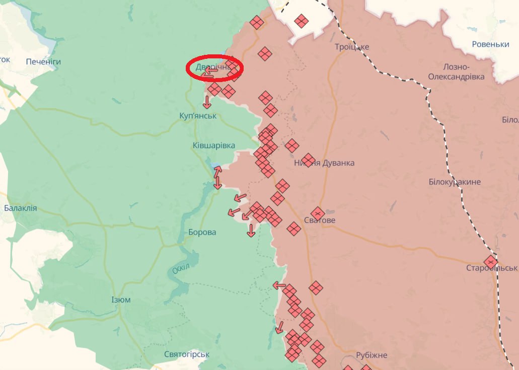 Раніше військові оглядачі повідомляли, що війська РФ закріплюються на плацдармі на західному березі річки Оскол і займають селище Дворічне у Куп'янському районі Харківської області.