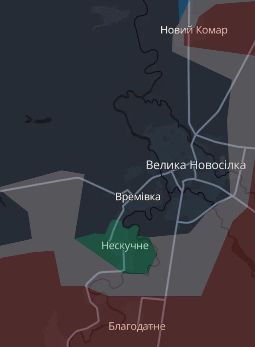 Російські телеграм-канали заявляють, що війська РФ перерізали трасу на Велику Новоселку з боку Гуляйполя і захопили ряд опорників на північ від дороги.