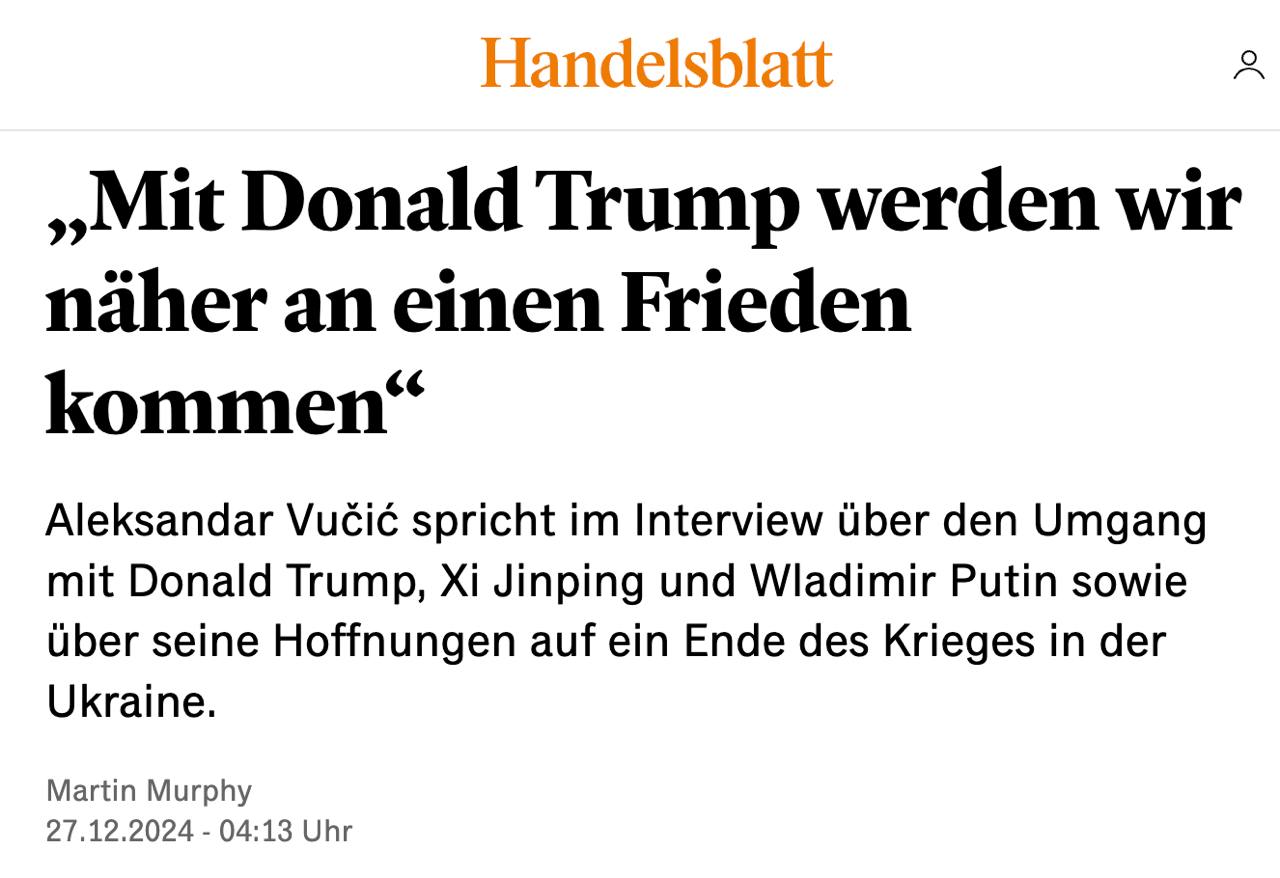 Про це в інтерв'ю Handelsblatt заявив президент Сербії Александр Вучич.