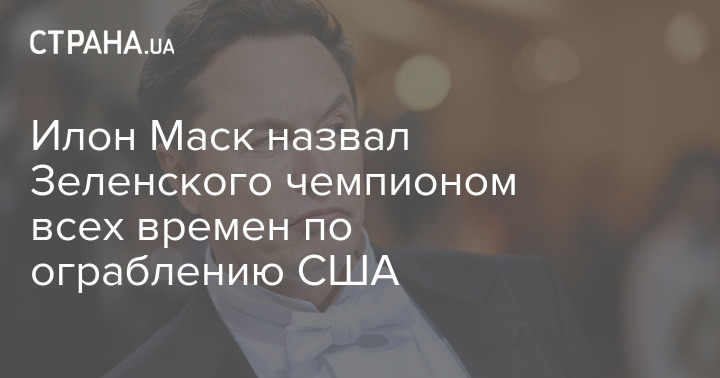 Американський бізнесмен Ілон Маск назвав Володимира Зеленського чемпіоном усіх часів із пограбування Сполучених Штатів.