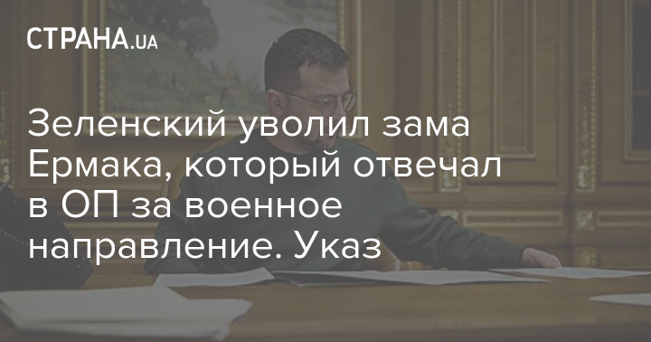 Зеленський звільнив заступника Єрмака, який відповідав у ВП за військовий напрямок. Указ