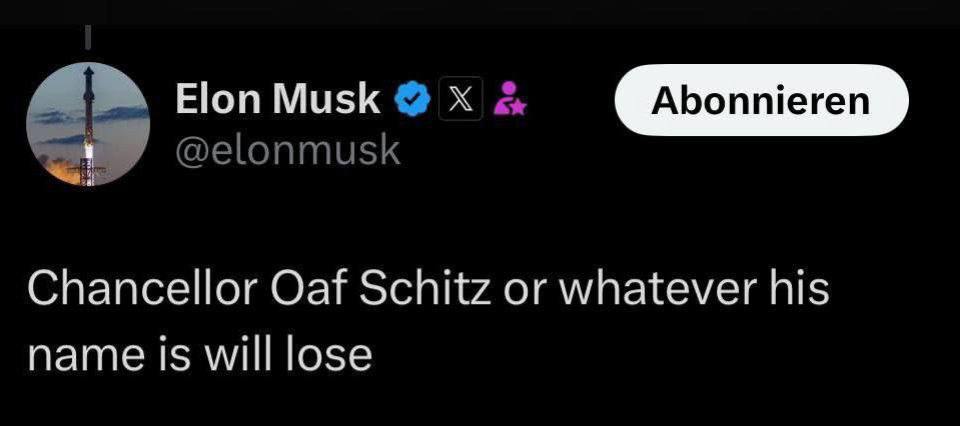 "Канцлер Оаф Шітц, або як його там звуть, програє", - написав бізнесмен із команди Трампа.