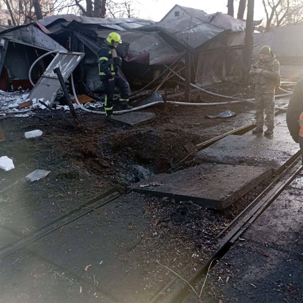 Тим часом у Святошинському районі постраждали гаражі на нежитловій території та автомобілі, вибиті вікна у сусідньому будинку. Крім того, уламки дронів упали неподалік трамвайного депо на Борщагівці. Пошкоджено трамвайні колії.