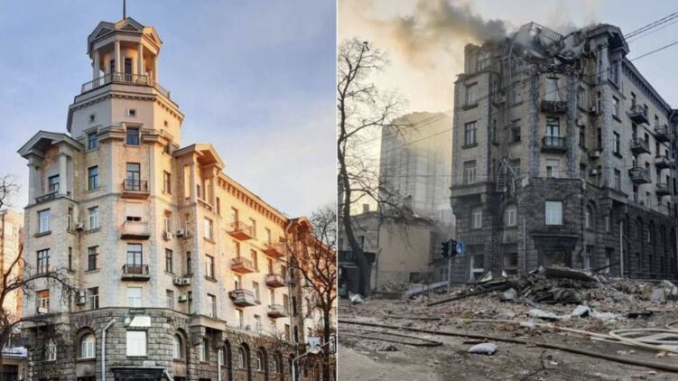 "Будинок Раднаркому" у Києві до і після удару "Шахеда"