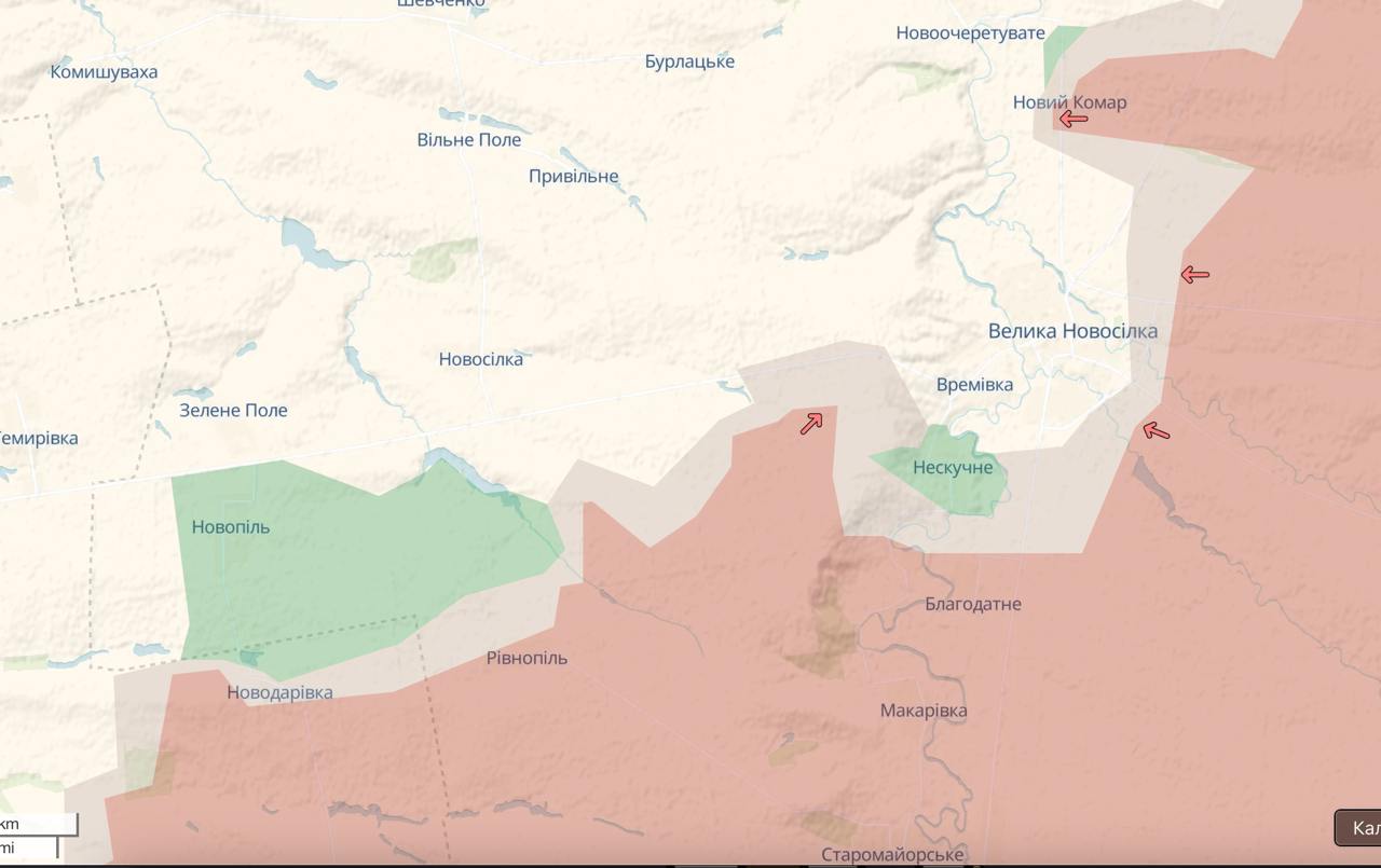 За його словами, становище українських військ погіршиться з просуванням росіян до дороги на Успенівку і до річки Мокри Яли. На контрудари в районі Нового Комара на північ від Великої Новосілки або на південний захід від неї "немає необхідних сил".