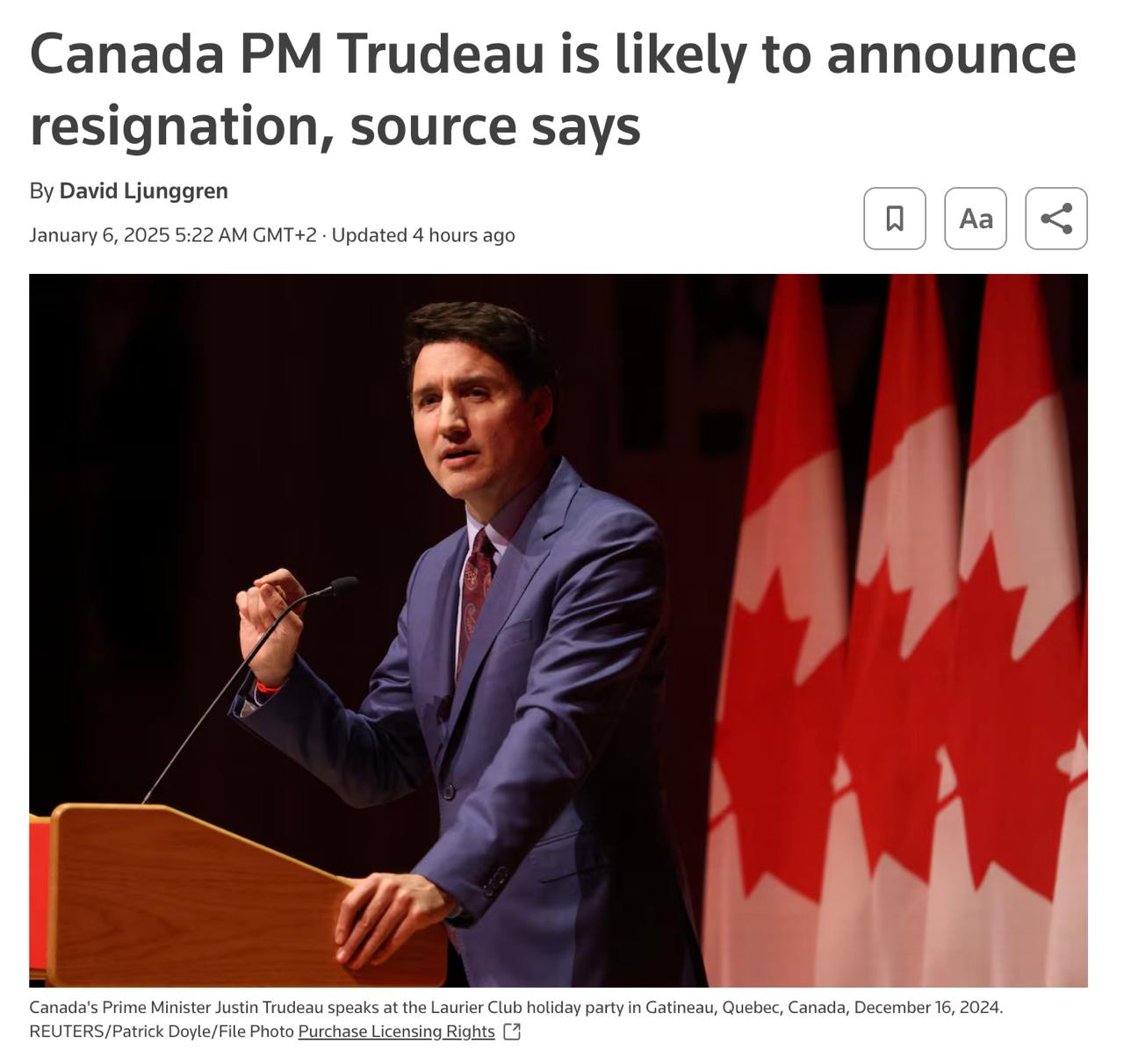 Опитування показують, що Ліберальна партія, лідером якої є Трюдо, "нищівно" програє консерваторам на виборах, які мають відбутися цього року. На тлі таких рейтингів дедалі більше ліберальних парламентаріїв публічно закликають Трюдо піти у відставку.