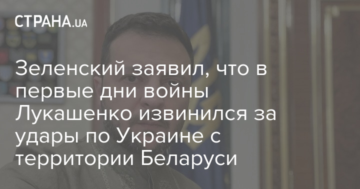 Президент України Володимир Зеленський заявив, що у перші дні війни Олександр Лукашенко вибачився за удари по Україні з території Білорусі. Мінськ це заперечує.