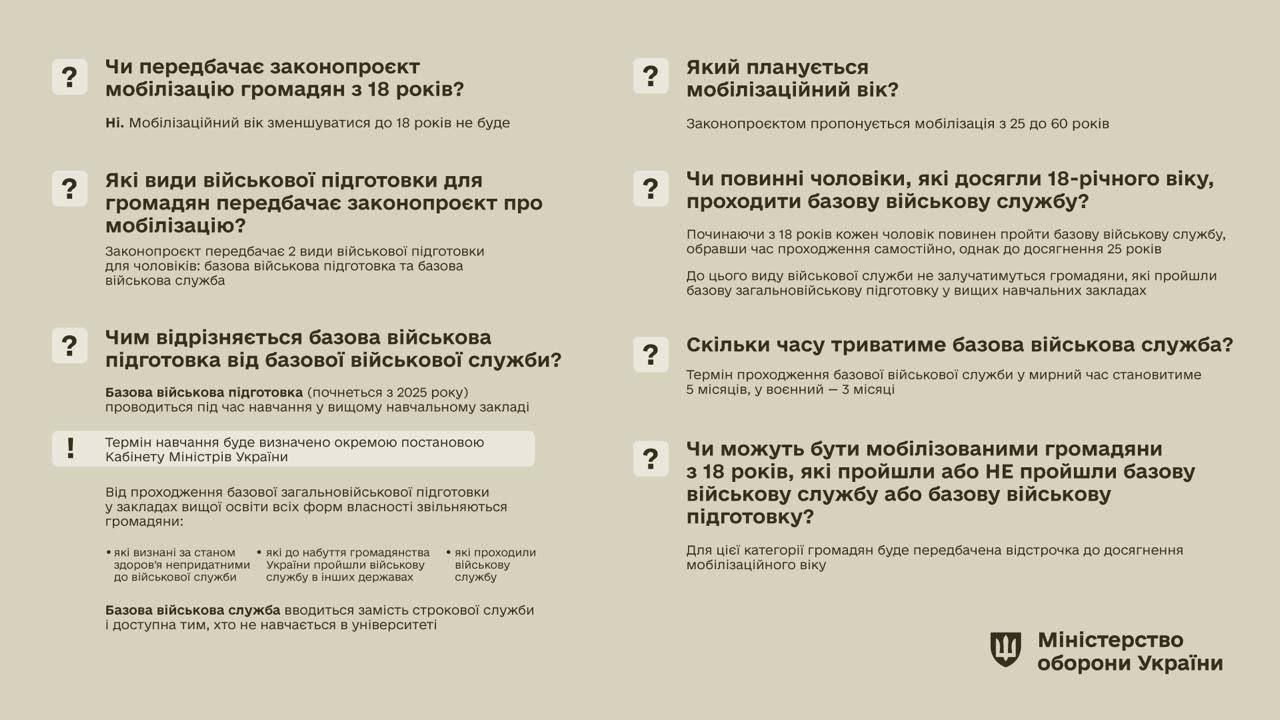 Заявлено, що підлягати мобілізації хлопці віком до 25 років після проходження підготовки чи служби не будуть.