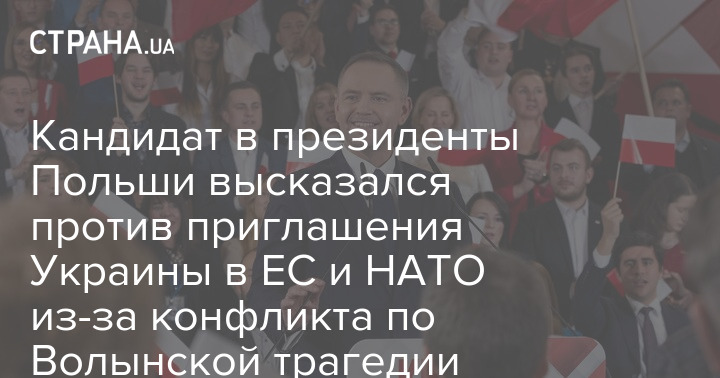 Кандидат у президенти Польщі висловився проти запрошення України до ЄС та НАТО через конфлікт по Волинській трагедії