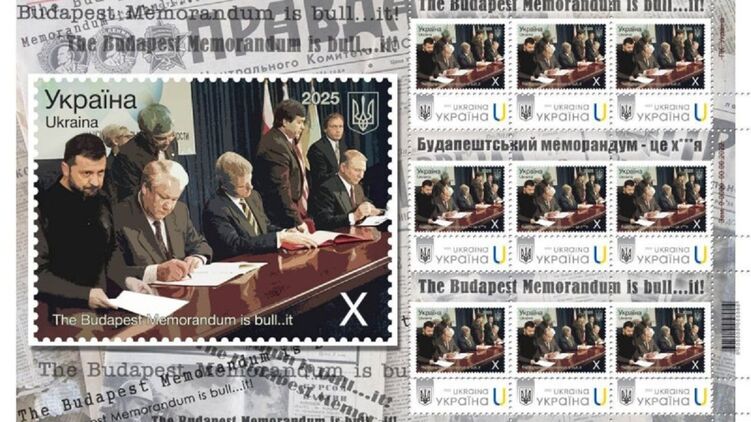 Державна компанія "Укрпошта" запустила у продаж марку з цитатою Володимира Заленського "Будапештський меморандум - це ху@ня".