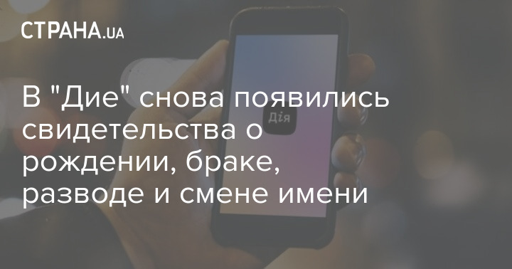 У додатку державних послуг "Дія" знову з'явилися свідоцтва про народження, шлюб, розлучення та зміну імені.