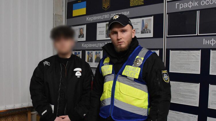 Поліцейський з одним із компанії юнаків. Фото: facebook.com/UA.KyivPolice