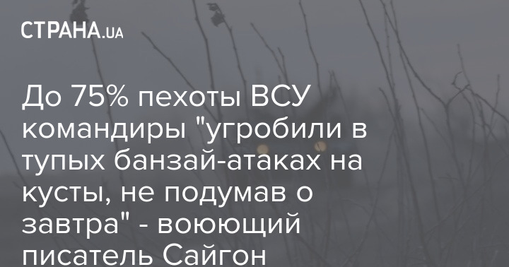 До 75% піхоти ЗСУ командири "угробили в тупих банзай-атаках на кущі, не подумавши про завтра" - письменник Сайгон, що воює
