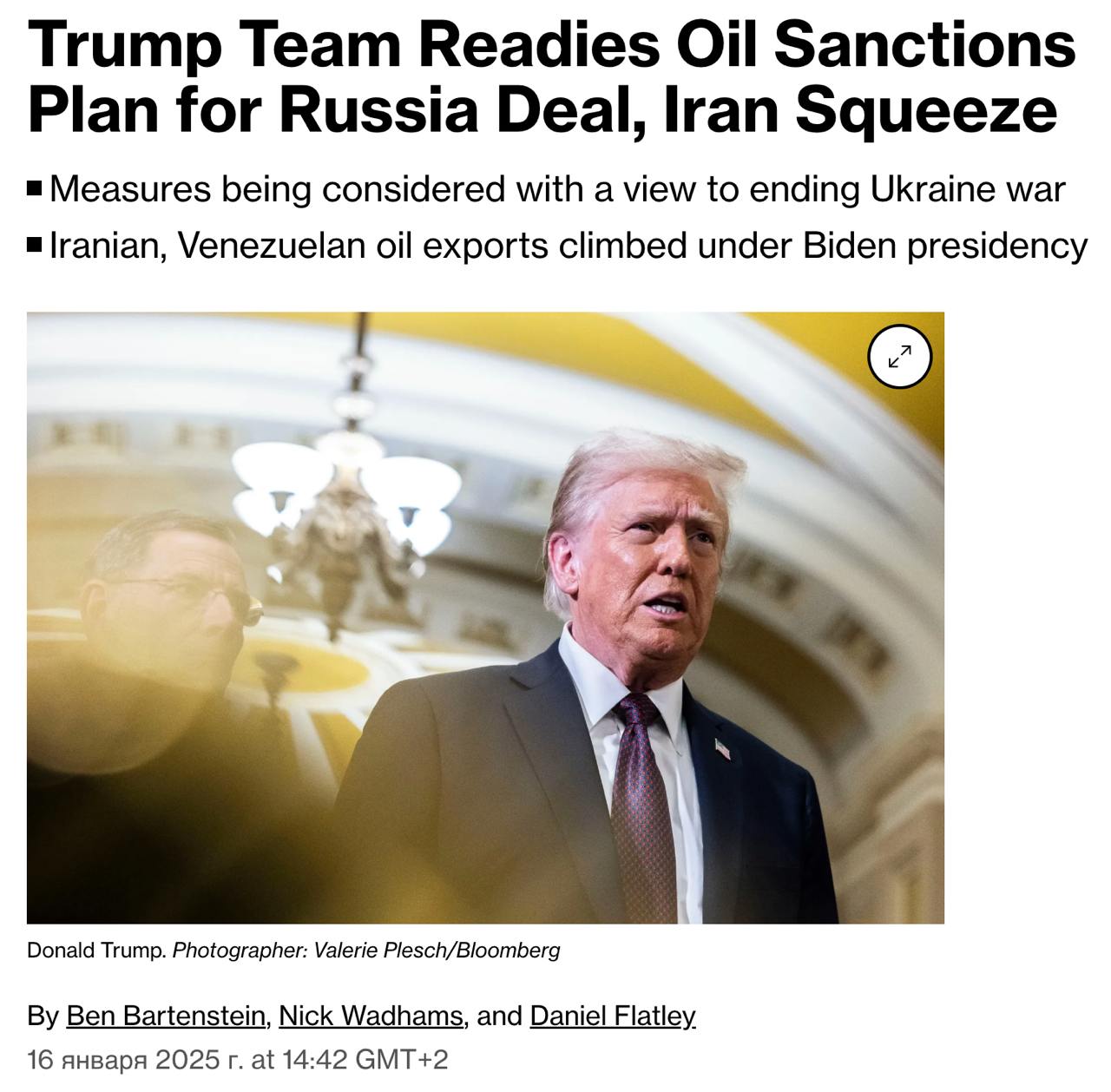 Команда обраного президента США Дональда Трампа розробляє масштабну стратегію санкцій, щоб досягти угоди між Росією та Україною в найближчі місяці, одночасно чинячи тиск на Іран та Венесуелу.