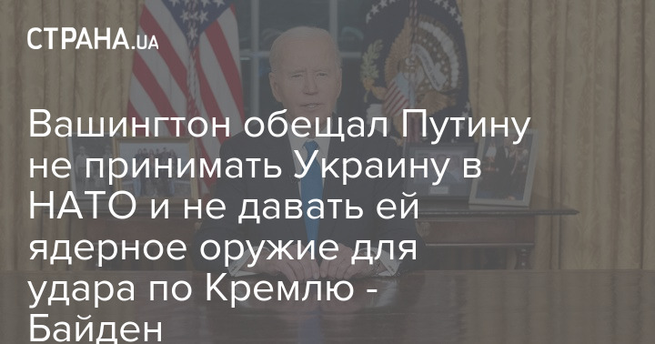 Вашингтон обіцяв Путіну не приймати Україну в НАТО і не давати їй ядерну зброю для удару по Кремлю - Байден