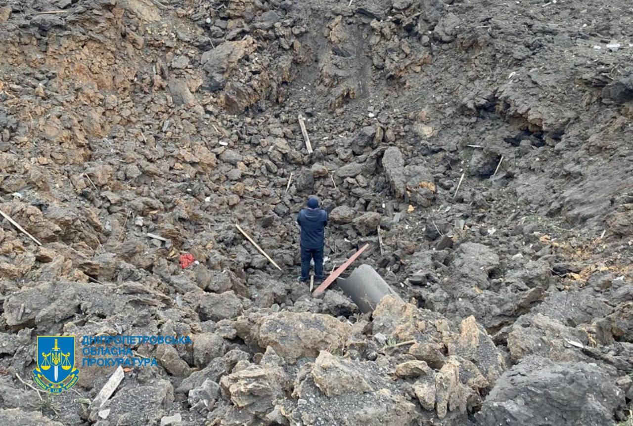 Фото величезної вирви після обстрілу Синельникове опублікувала прокуратура.