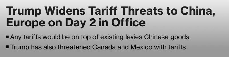 На другий день свого президентства Трамп посилив свої тарифні погрози на адресу Китаю та Європи, а також загрожує тарифами Канаді та Мексиці.