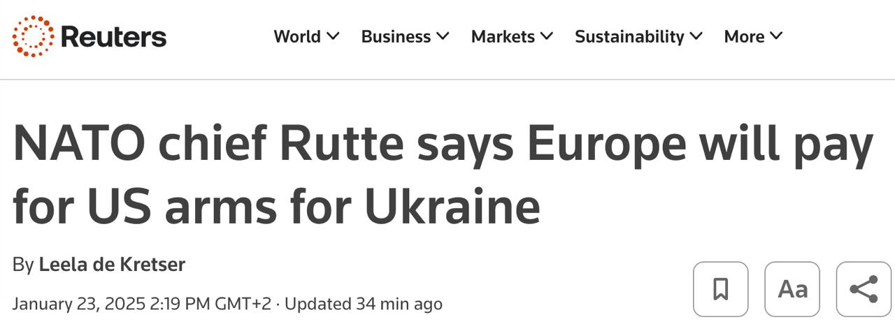 "Що стосується України, нам також необхідно, щоб США продовжували брати участь у цьому процесі. Якщо ця нова адміністрація Трампа готова продовжувати постачати Україну зі своєї оборонно-промислової бази, то рахунок сплатять європейці, я в цьому абсолютно переконаний, ми маємо бути готові це зробити ", - Наводить його слова Reuters.