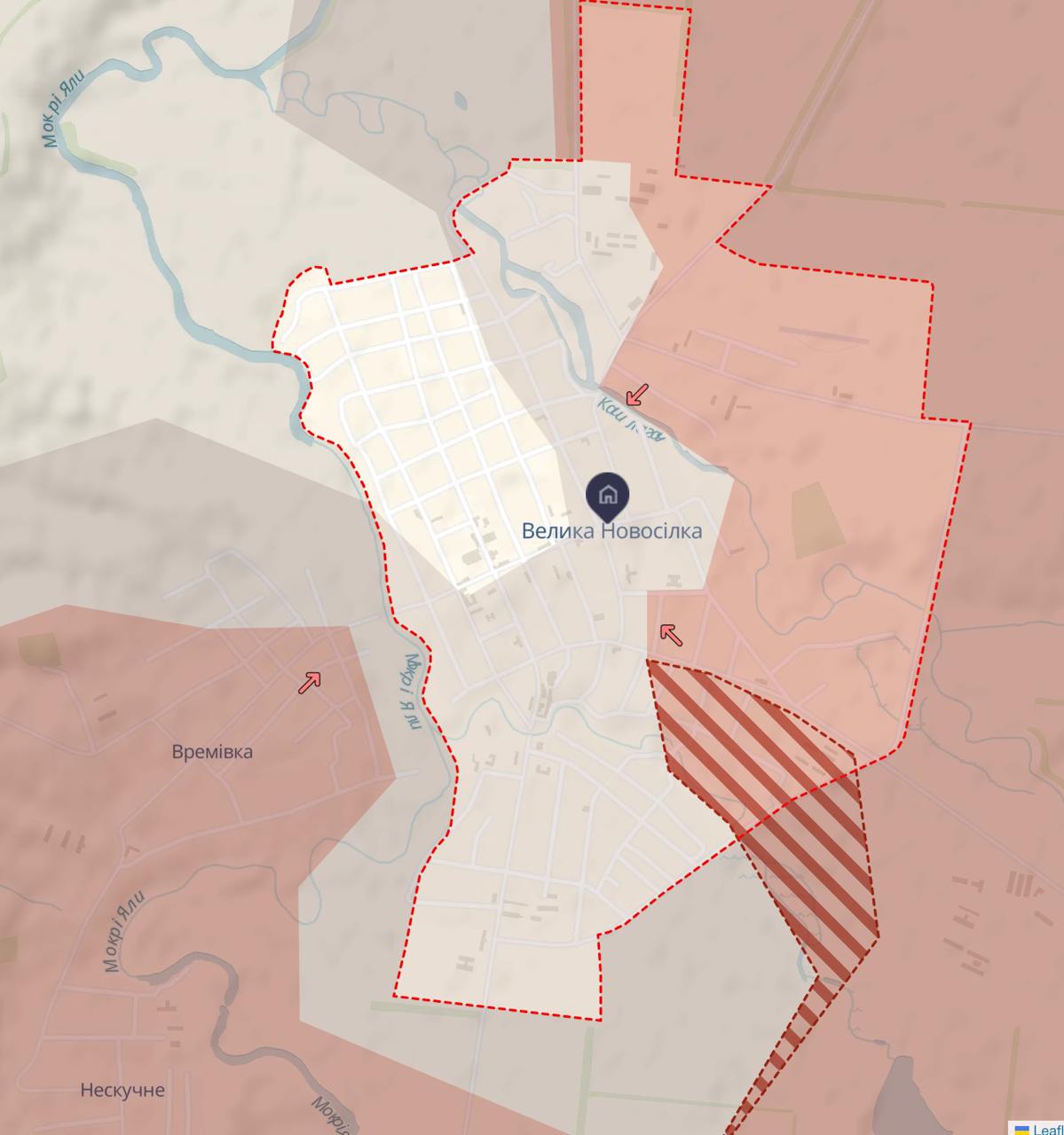 Велика Новосілка майже вся або у сірій зоні, або під контролем РФ.