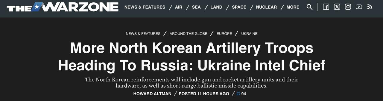 Північна Корея відправить РФ підкріплення в Курську область - ракетні та артилерійські війська. Про це повідомив The War Zone глава ГУР Міноборони Кирило Буданов.