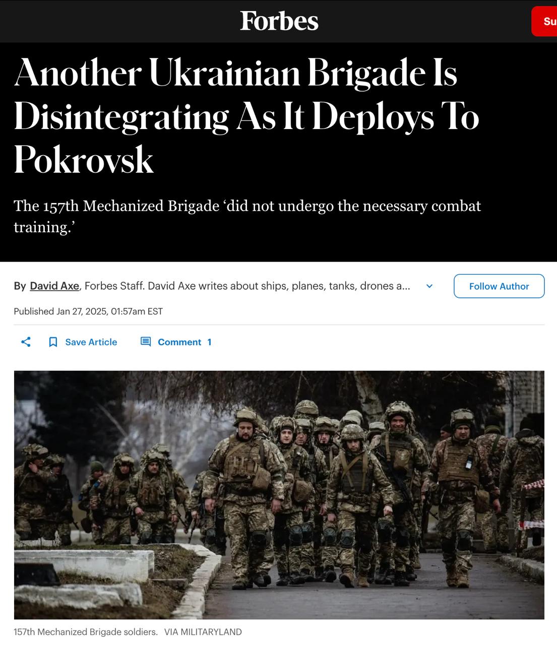 "Ситуація у 157-й механізованій бригаді відображає ситуацію в інших бригадах 150-ї серії. Солдати були взяті в процесі формування підрозділу, поспішно перекинуті на фронт і відправлені без належної підготовки, що призвело до важких втрат", - пише військовий портал Militaryland.