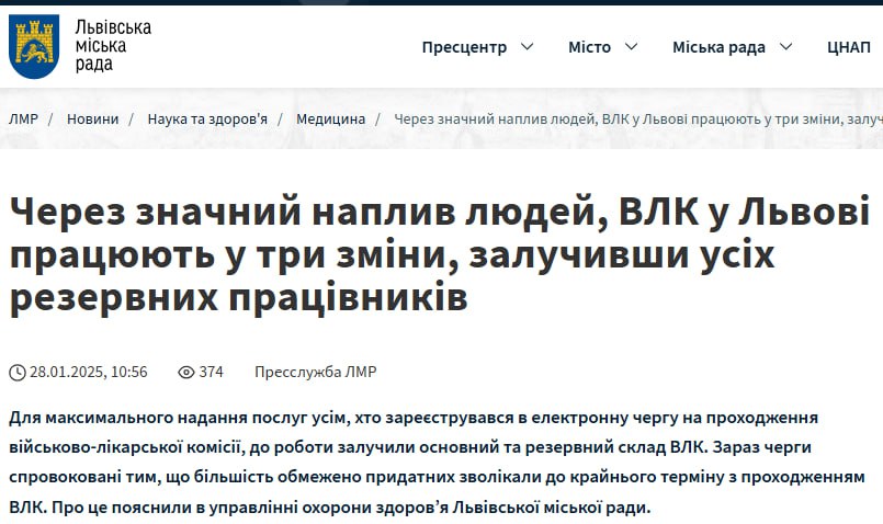 У Львові військово-лікарські комісії (ВВК) працюють у три зміни через наплив людей перед закінченням терміну обов'язкового медогляду для обмежено придатних.