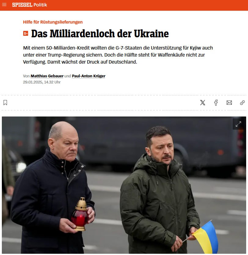 Канцелярія канцлера тоді запевняла, що в України ще достатньо коштів, виділених Німеччиною на 2024 рік. Крім того, вона може скористатися кредитними коштами країн G7. Однак, як виявилося, близько половини з передбачених 50 мільярдів доларів взагалі не можуть бути використані для закупівлі озброєнь. ", - пише Der Spiegel.