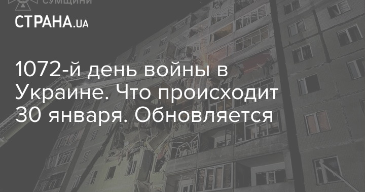У четвер, 30 січня, в Україні триває 1072-й день війни з Росією.