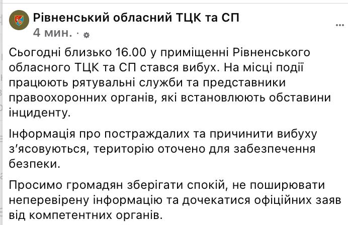 У свою чергу, Рівненський обласний військкомат підтверджує, що вибух стався всередині ТЦК, і заявляє, що обставини з'ясовуються.