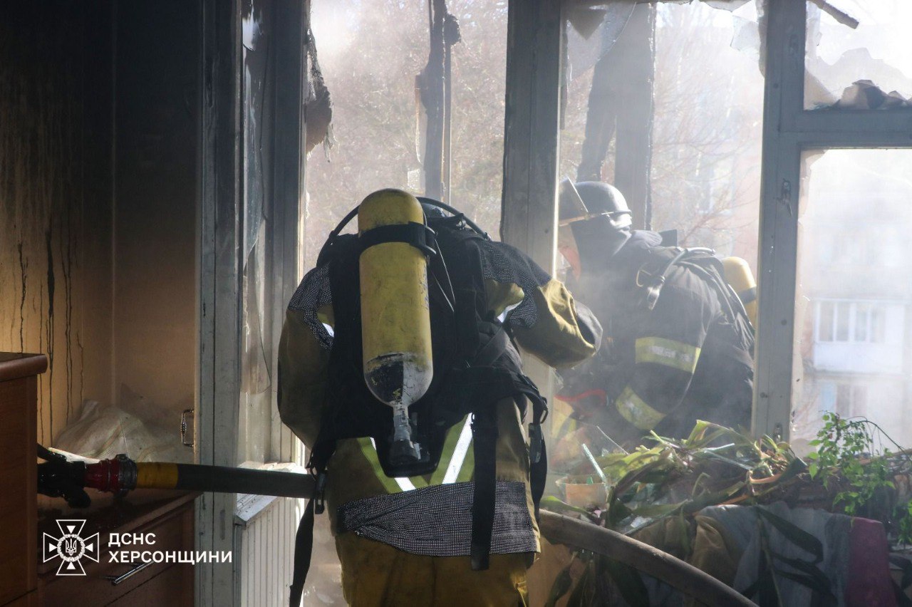Через вибух вибухівки з дрону виникла пожежа на балконі однієї з квартир багатоповерхівки. Рятувальники оперативно ліквідували вогонь, не допустивши його розповсюдження у квартиру.