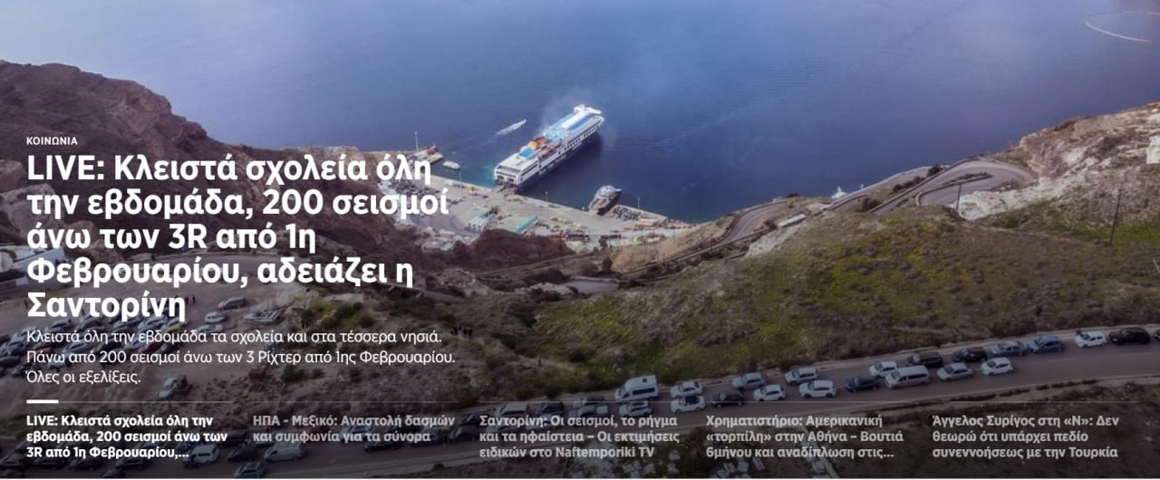 "Великі черги утворилися в порту Афініос на Санторіні, оскільки сотні місцевих жителів і людей, які відвідали острів, готуються залишити його на поромах через постійну сейсмічну активність, а також через страх сильнішого землетрусу або пробудження вулкана", - йдеться у повідомленні..