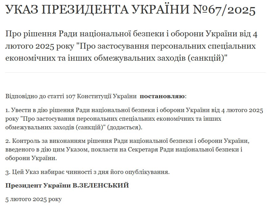 Раніше повідомлялося, що в середині січня Зеленський підписав указ про введення санкцій РНБО "проти пропагандистів, які працюють на Росію, осіб, які перейшли на бік ворога та тих, хто допомагає Росії продовжувати війну".