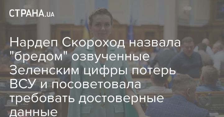 Народний депутат Ганна Скороход назвала "маячнею" озвучені президентом Володимиром Зеленським цифри втрат ЗСУ.