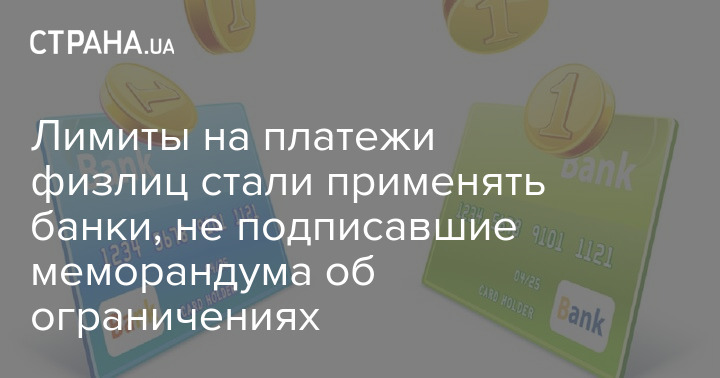 Нові ліміти на платежі для фізичних осіб почали застосовувати не лише банки, які заявили про підписання меморандуму "Про забезпечення прозорості функціонування ринку платіжних послуг" з обмеженнями на перерахування, але й ті, хто не увійшов до списку 46 установ-підписантів (у ньому значаться 44 банки та дві небанківські фінансові установи).