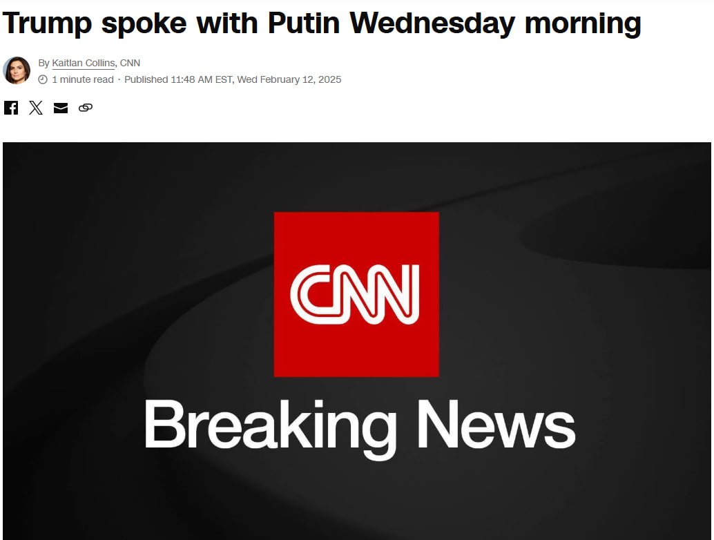 Пізніше Трамп підтвердив, що провів довгу розмову з Путіним. За словами президента США, було вирішено "негайно" відкрити офіційні переговори щодо України.