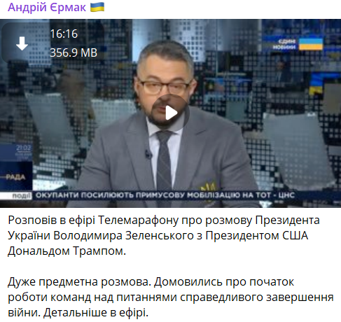 Також президент України прокоментував свою телефонну розмову з Трампом. За словами Зеленського, "Україна найбільше хоче миру".