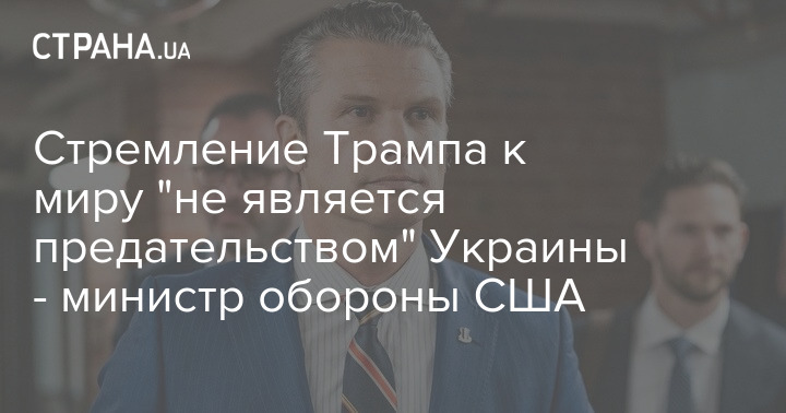Прагнення президента США Дональда Трампа до миру "не є зрадою" України. Про це заявив міністр оборони США Піт Хегсет, повідомляє The Guardian.
